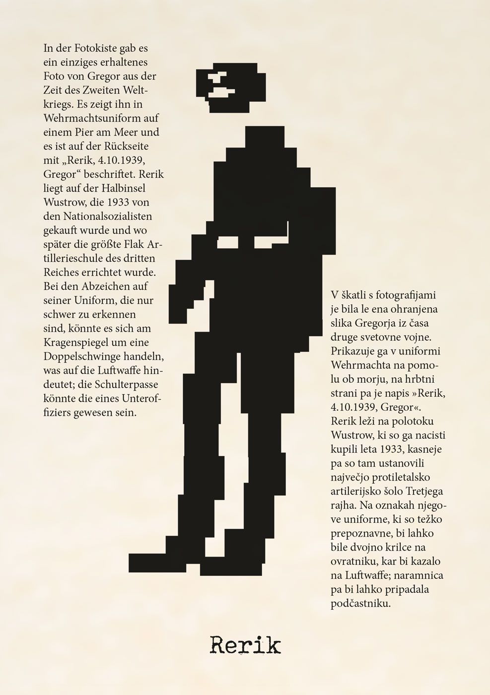 | Skoraj Pozabljeno, Edith Payer investigates what exactly her grandfather did during the Second World War. As a child, she had heard rumors about his possible affiliation with the SS, and there were several indications of his German-nationalist convictions. Yet the documents preserved within the family reveal hardly anything about her grandfather’s activities under National Socialism, and even his later life appears to be almost entirely undocumented. Eighty years after the end of the war, the artist searches through official archives and within her own family for concrete clues.