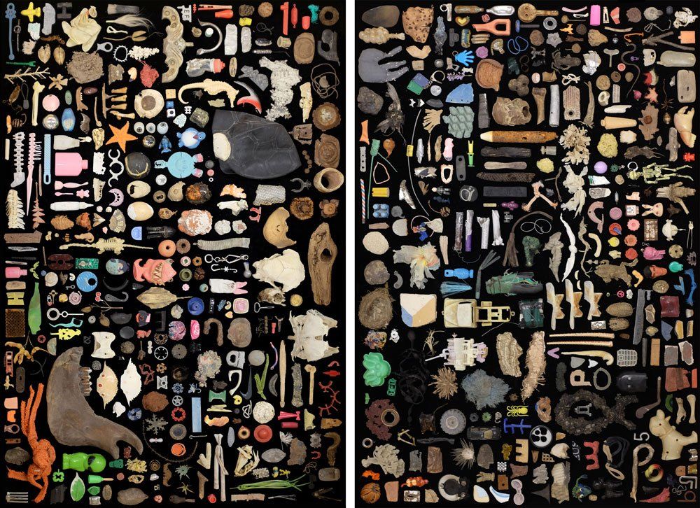 consists of display cases containing arrangements of found objects and refuse from the present day. It draws upon the principle of scientific collection that developed over the course of the voyages of research and conquest undertaken by colonial powers and national economic competitions from the beginning of the modern era. Artifacts, industrially manufactured fragments and natural objects are impartially arranged alongside each other, representing a panopticon of modern-day detritus.