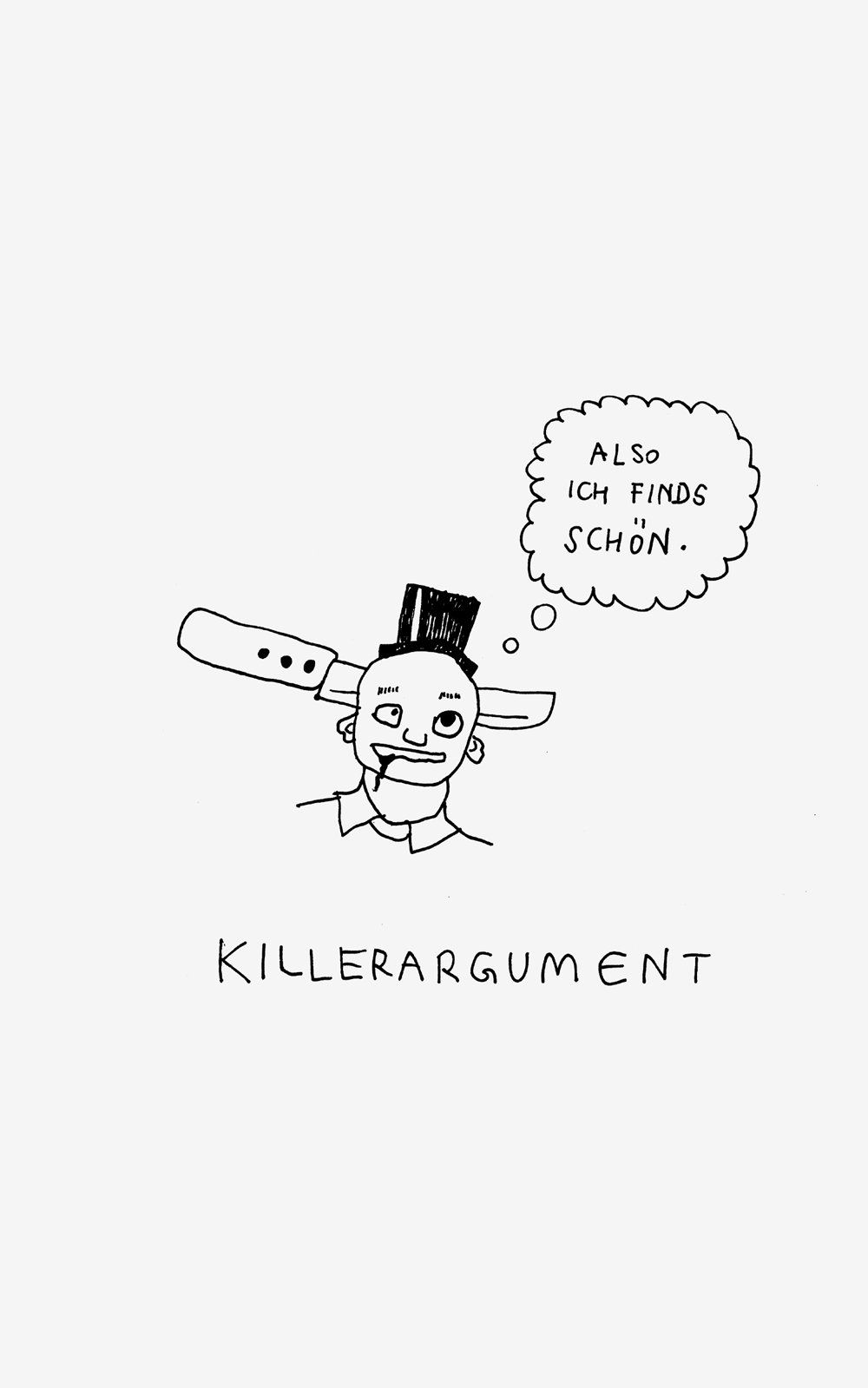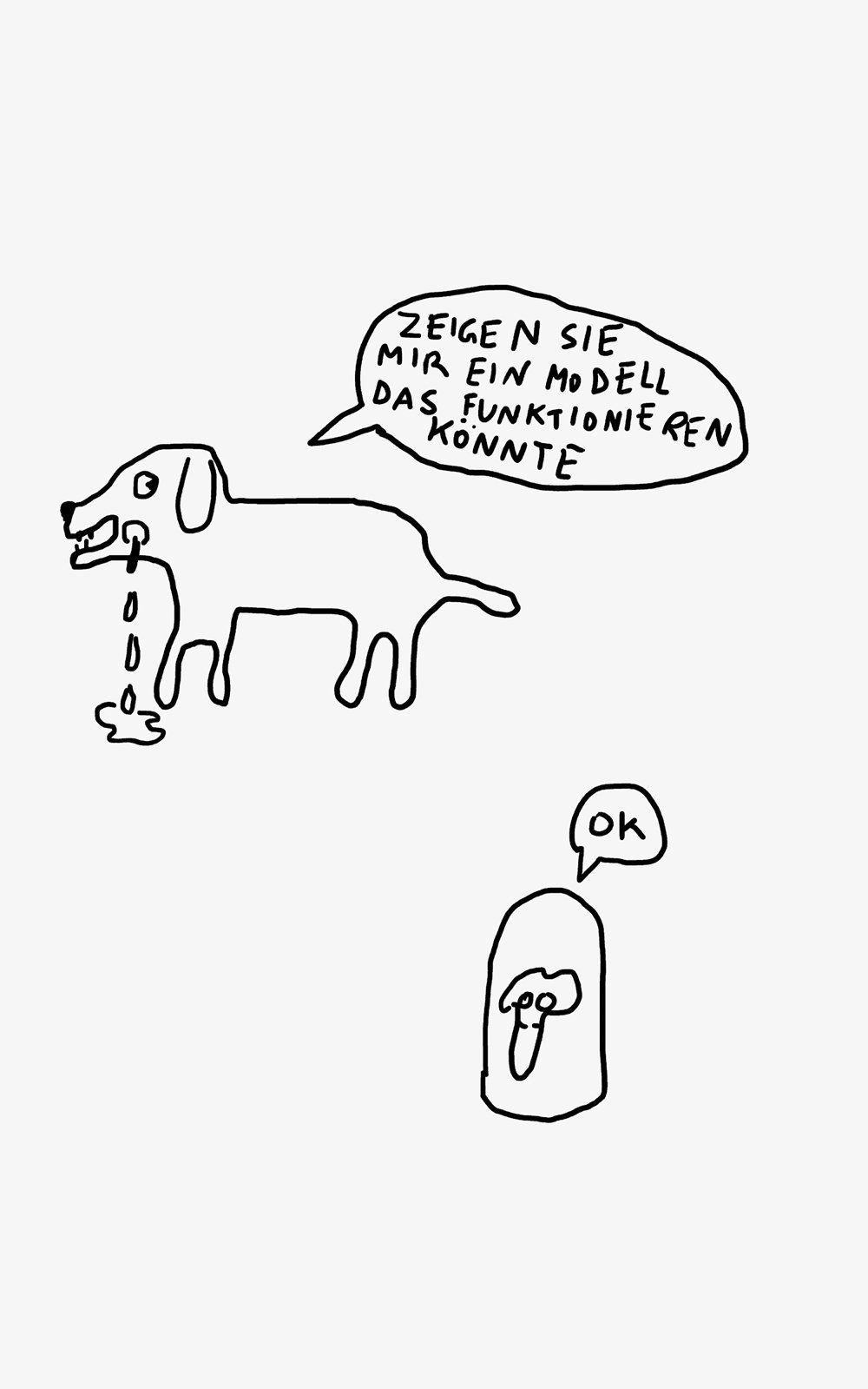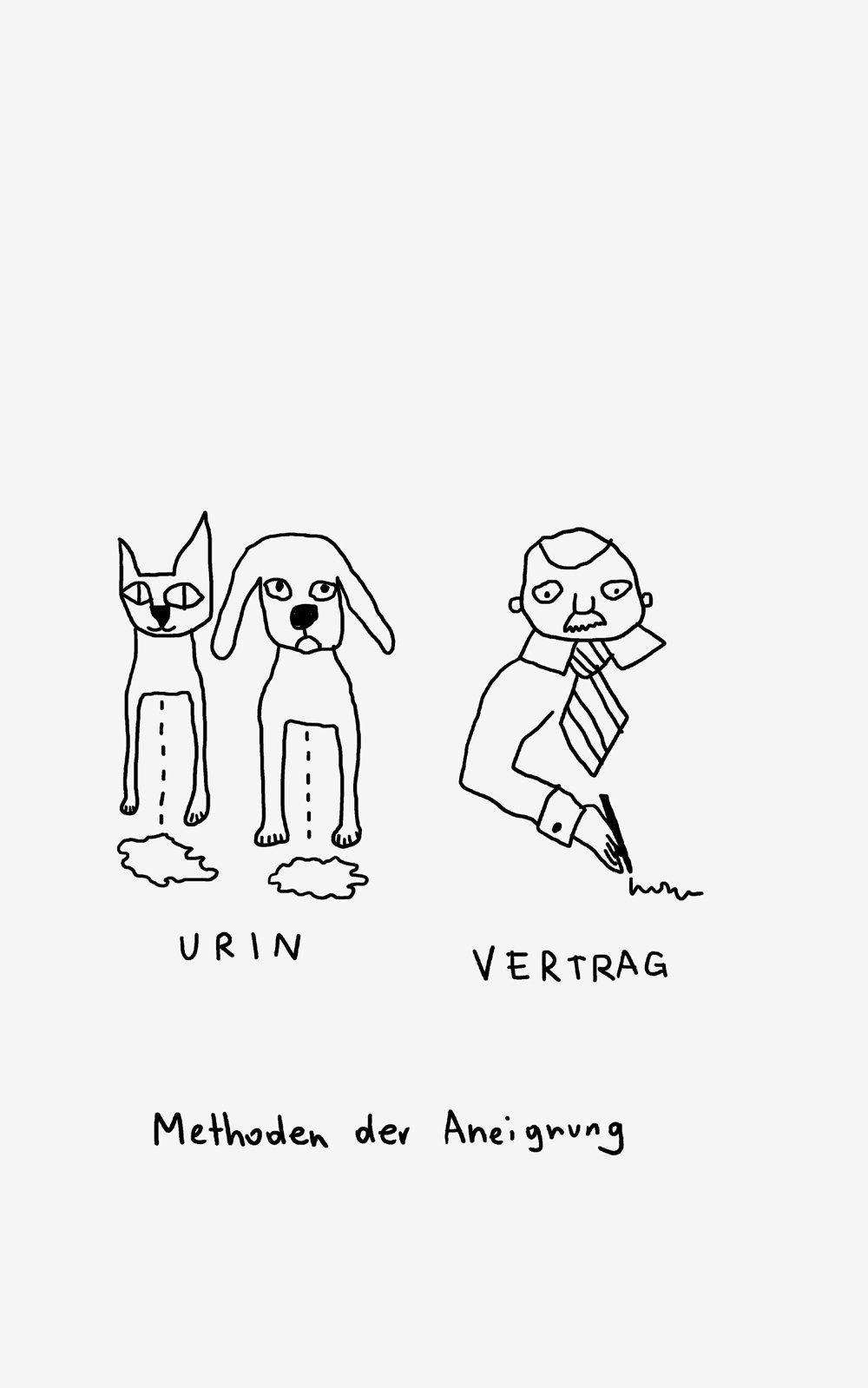 This book brings together a series of drawings that each represent a brief engagement with the possible psychological strain experienced by individuals in a civilised society. Ontological, political, economic and ecological issues are packaged in darkly comic drawings and interrogated using wordplay, cross-references and commentaries. The final product offers a pessimistic outlook that invites the reader to join in on the joke, and at the same time is based on the synergistic effects of spontaneous drawings and reflective textual commentary. The contents of the pages in the book were mostly drawn using marker pen and fineliner before being scanned and assembled into a digital collage.