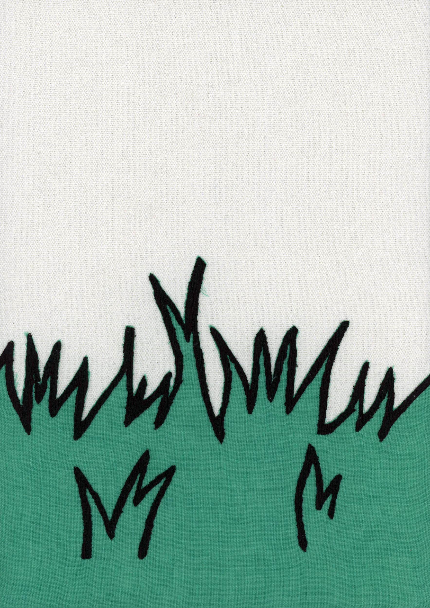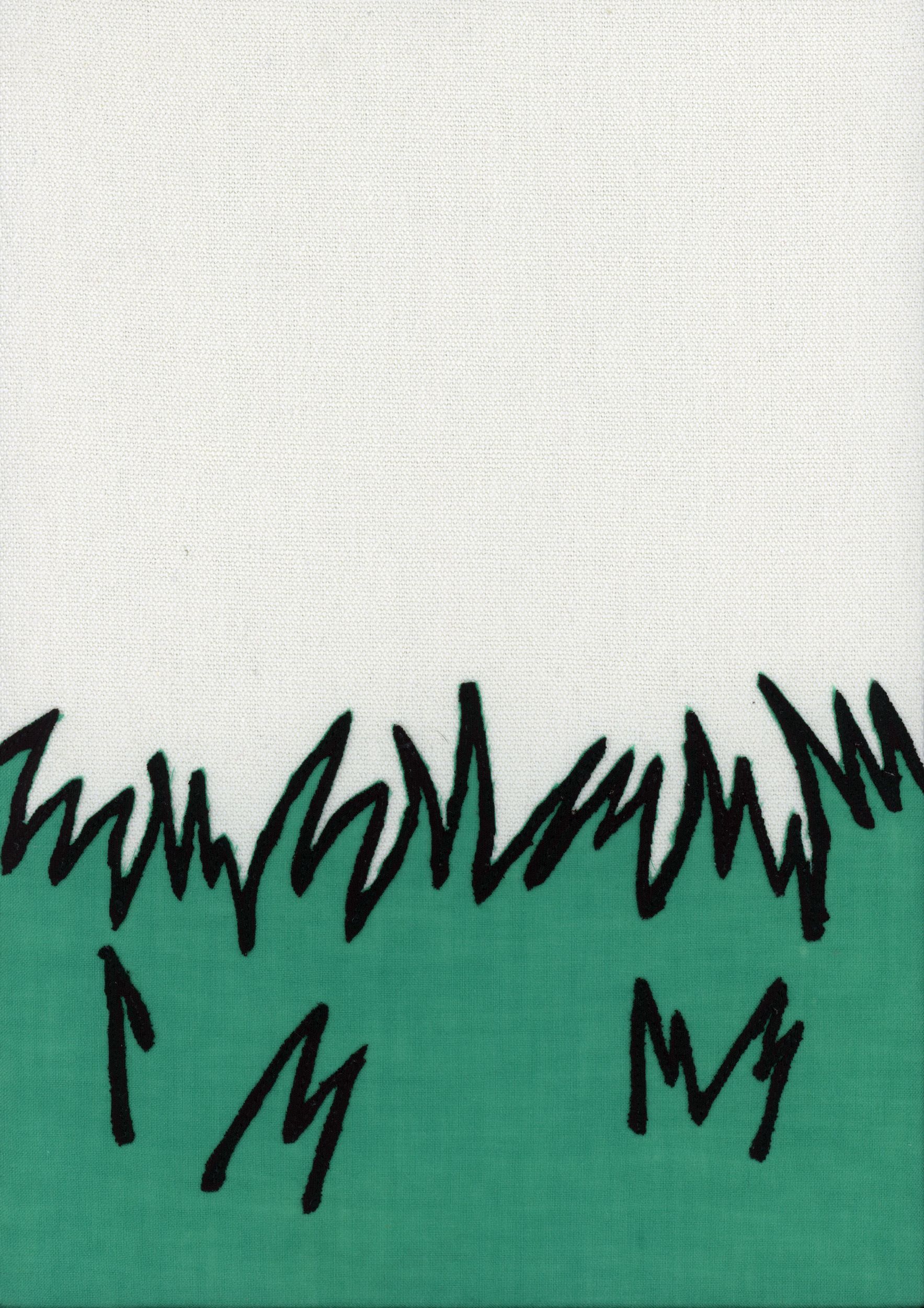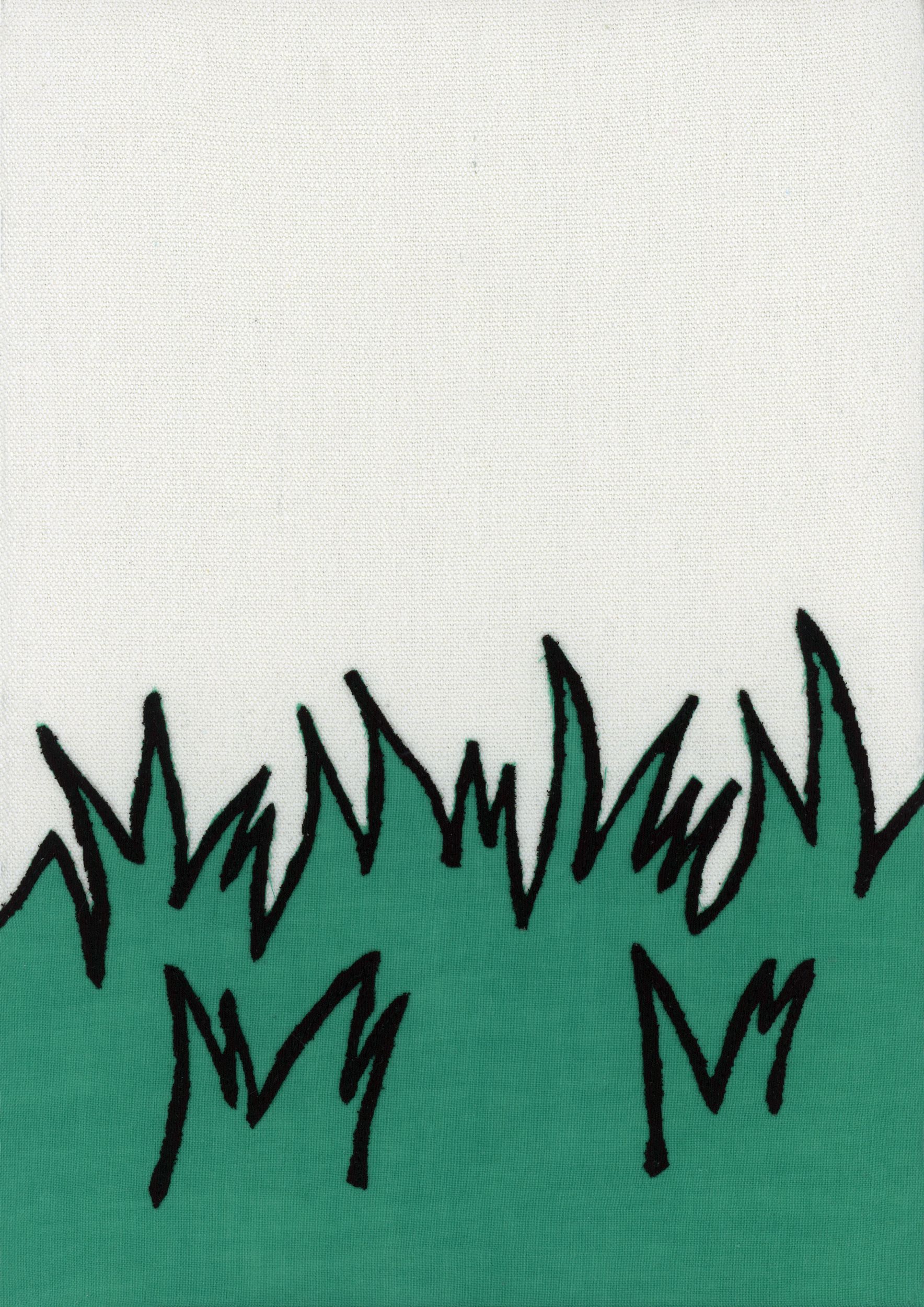 The Roundups series represents the perfect lawn. The title was taken from a popular broad- spectrum glyphosate-based herbicide commonly used for private gardens. Roundup kills around 250 types of weed and should only be appropriated to northern grasses; otherwise, or due to misapplication (which happens quite often) the whole lawn dies. The appearance of the sewed lawn pieces is extremely reduced, similar to the representation in comics. It is the complete opposite of the famous "Great Piece of Turf" by Albrecht Dürer, which shows a study of an apparently unordered group of wild plants.