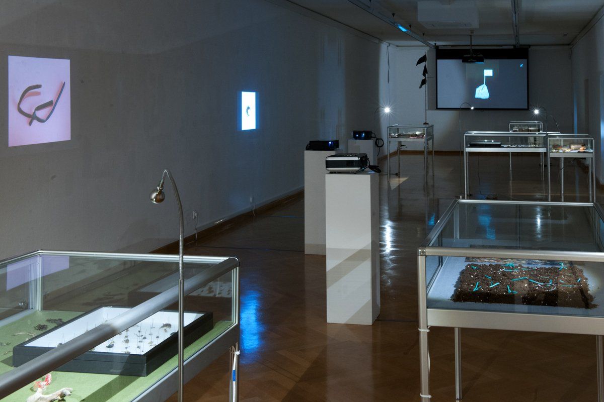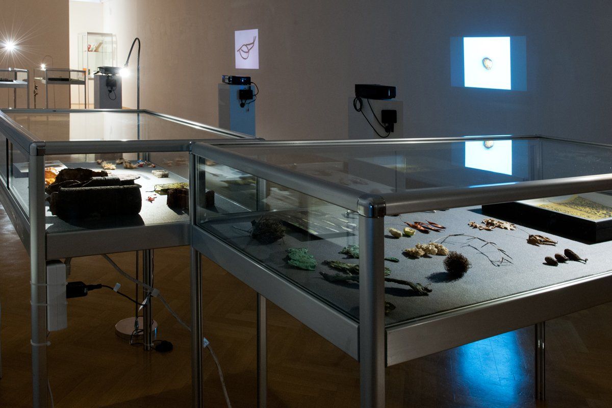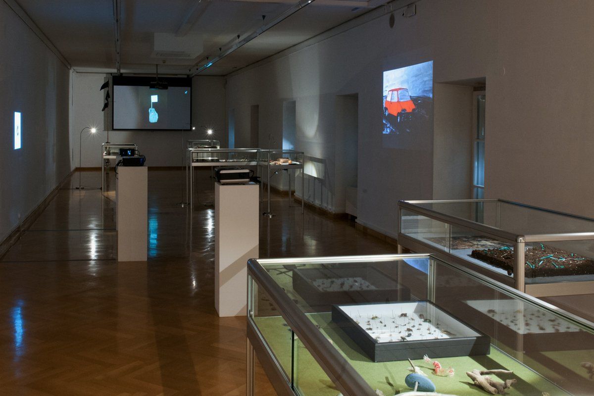 Installation with 4 digital slide shows, 6 cabinets and a museum guide | 2019 | collaboration with Markus Waitschacher | installation size 24 x 8 m, cabinets 135 x 65 cm, folder 12 pages, Din A5, Offset, 500 copies | Images: Living Studio, Stadtgalerie Klagenfurt | Photos: Gabriela Jost
